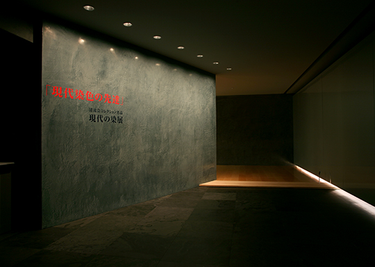 世界で初めての「染色専門美術館」です。2006年日本の染色アートを世界に向けて発信することを目的に、京都中京区の室町通に設立された。京都を拠点に活躍する作家100人の作品や500点を収蔵し、染清流展をはじめとする様々な展覧会を開催する美術館である。既存の建物のなかにあり、染色作品の鑑賞に適したタタミ敷きの展示室である。展示室内照度は作品の退色を防ぐため60lx以下で計画した。そのため外部から暗い展示室までのスムーズな暗順応に細心の注意を計り、薄暗さを感じない空間作りにつとめた。